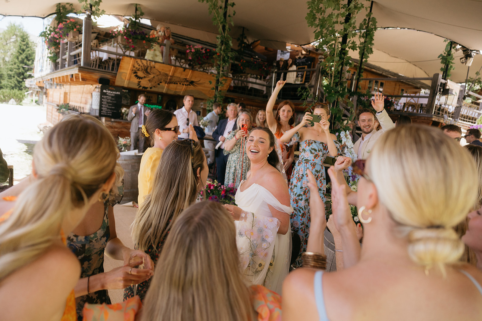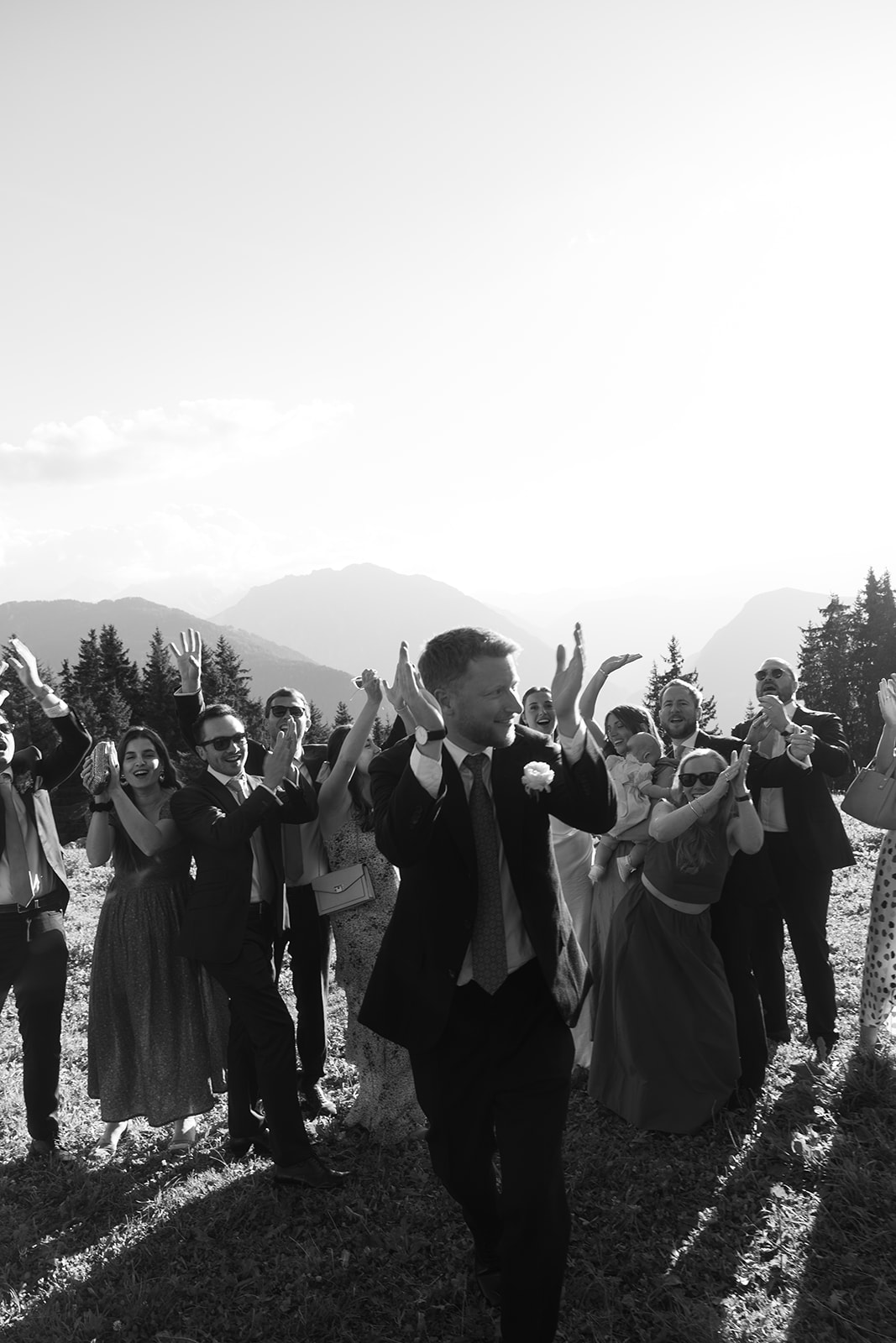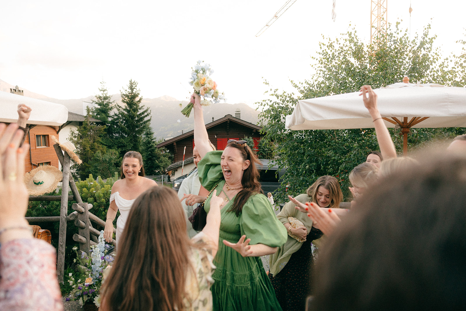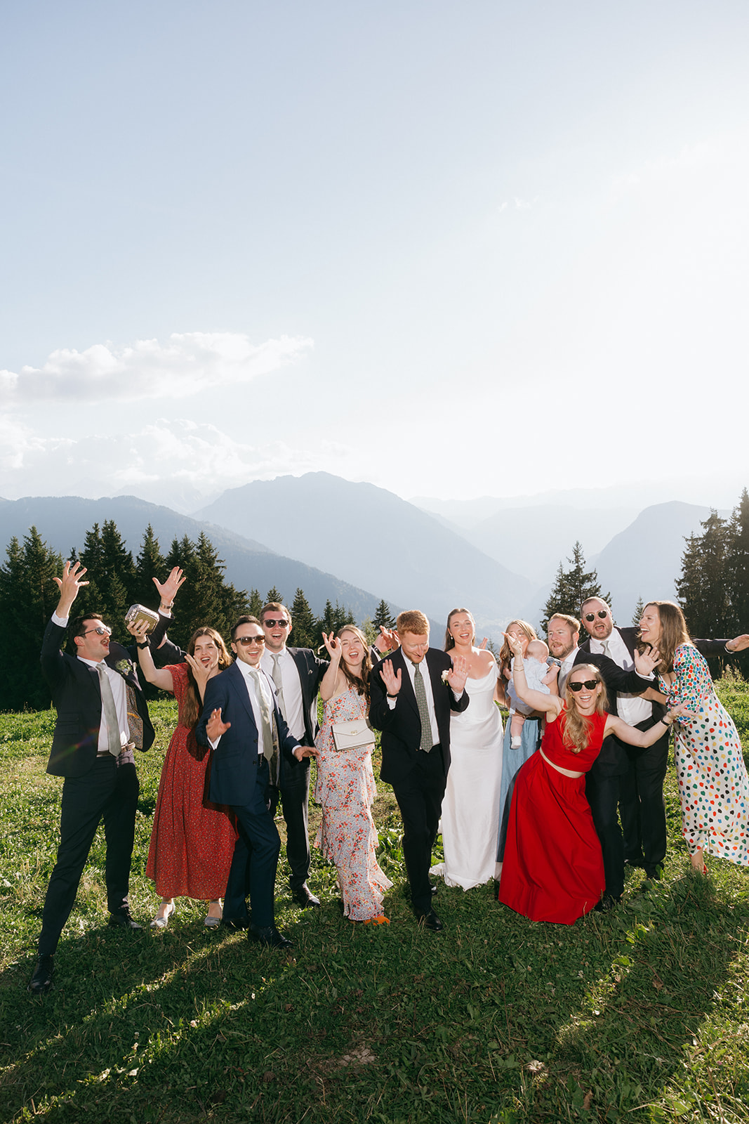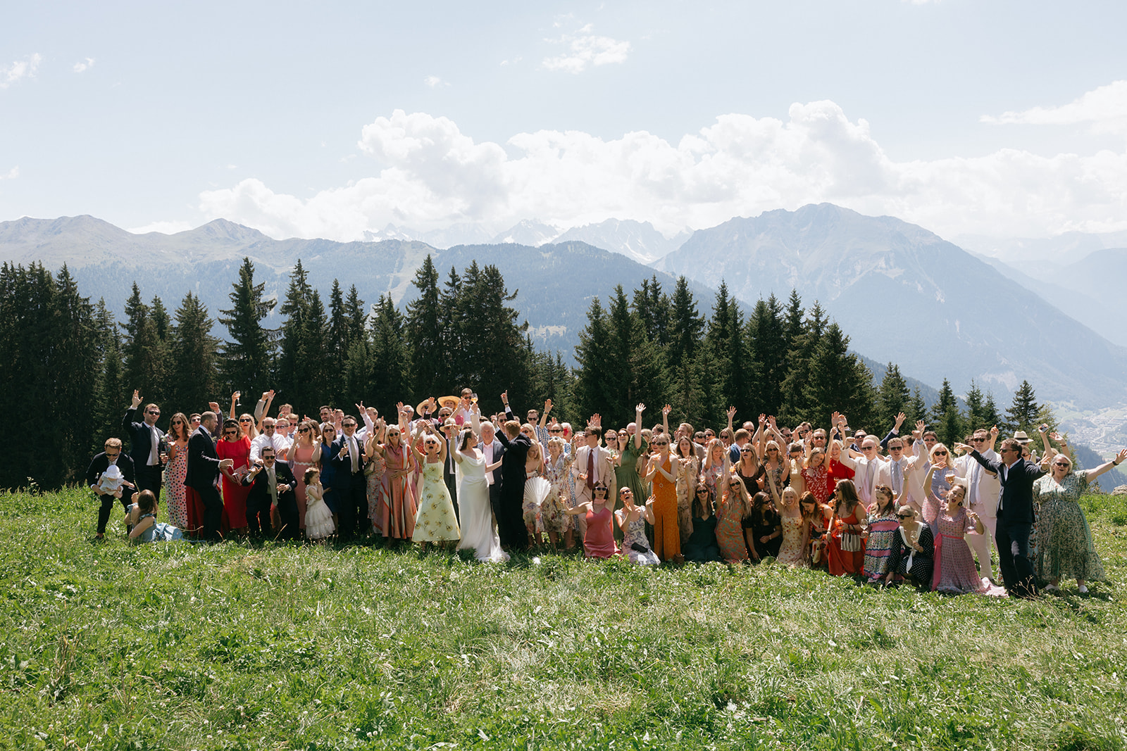 When Alice and Alex chose the Swiss Alps as the backdrop for their wedding day, they didn’t need to do much else. Verbier has a way of taking over — in the best possible way. But what made this day truly unforgettable wasn’t just the mountain scenery. It was the energy, the laughter, the colour, and a band that absolutely refused to let anyone stand still.
